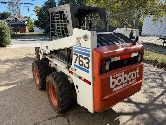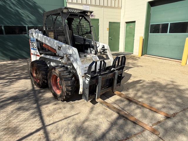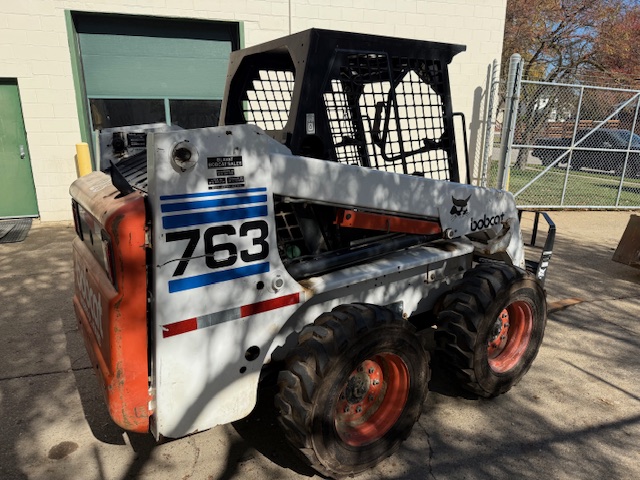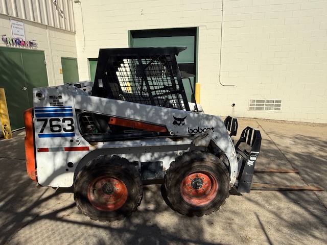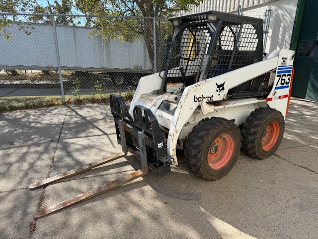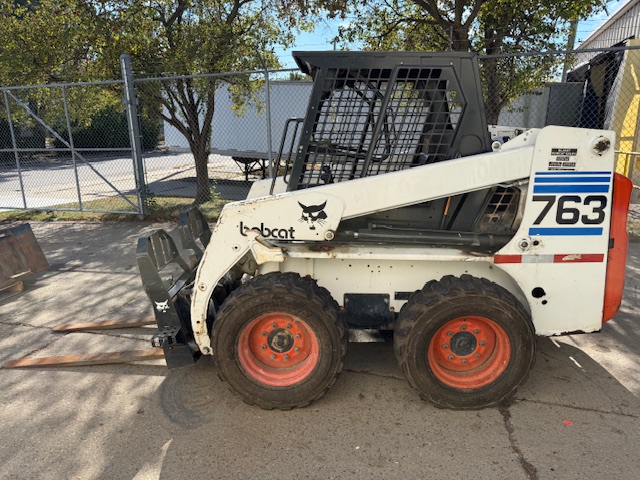 BOBCAT 763 SKID STEER LOADER, S/N 512233576, W/ BUCKET & FORKS, KUBOTA V2203-E DIESEL ENGINE, 10,667 HOURS